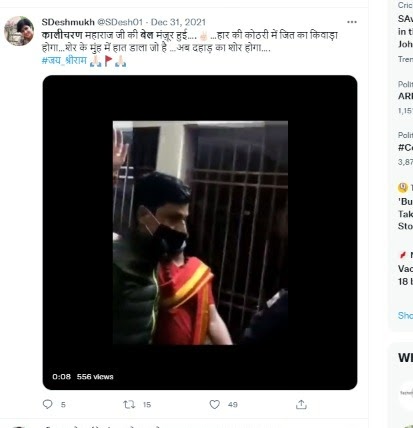 व्हिडीओ शेअर करताना एका ट्विटर युजरने लिहिले की, “कालीचरण महाराजांची जामीन मंजूर झाला आहे.. विजयाचे दार पराभवाच्या कोठडीत असेल… सिंहाच्या तोंडात हात घातला आहे… आता गर्जना तर होईल…”