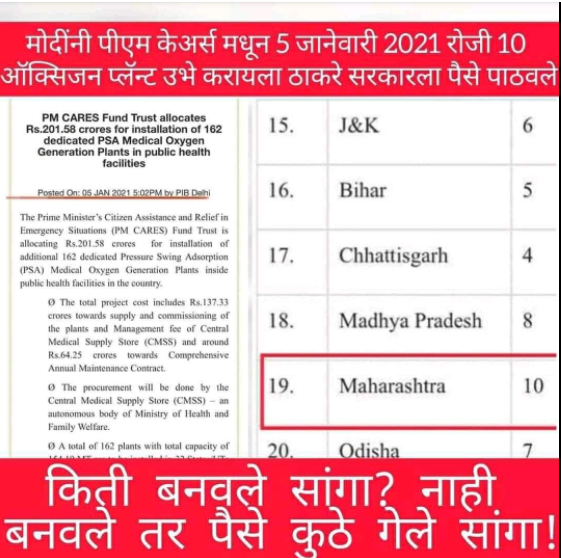 | Claim Review: राज्य सरकारने आॅक्सिजन प्लान्टचा निधी गायब केला Claimed By: Social Media post Fact Check: Misleading |