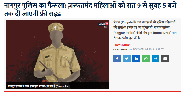 महाराष्ट्र पोलिसांनी खरंच असा उपक्रम सुरु केला आहे का याचा अधिक शोध घेण्यासाठी आम्ही गूगल सर्चचा आधार घेतला पण आम्हाला अशी कोणतीही बातमी आढळून आली नाही. शिवाय महाराष्ट्र पोलिसांचे असे कोणतेही ट्विट आढळून आले नाही. मात्र 4 डिसेंबर 2019 रोजीची नागपुर पोलिसांची एक बातमी न्यूज 18 या वेबसाईटवर आढळली ज्यात म्हटले आहे की, नागपुर पोलिसांनी गरजवंत महिलांसाठी सुरक्षेच्या दृष्टिकोनातून रात्री 9 ते पहाटे 5 पर्यंत विनाशुल्क राईड सुरु केली आहे.