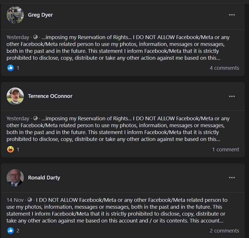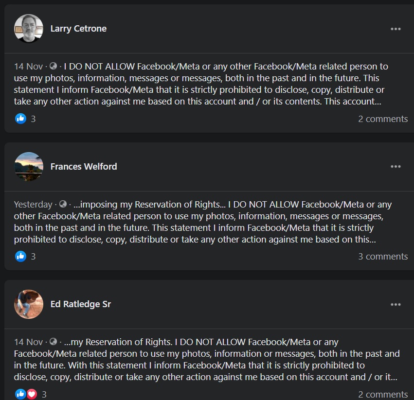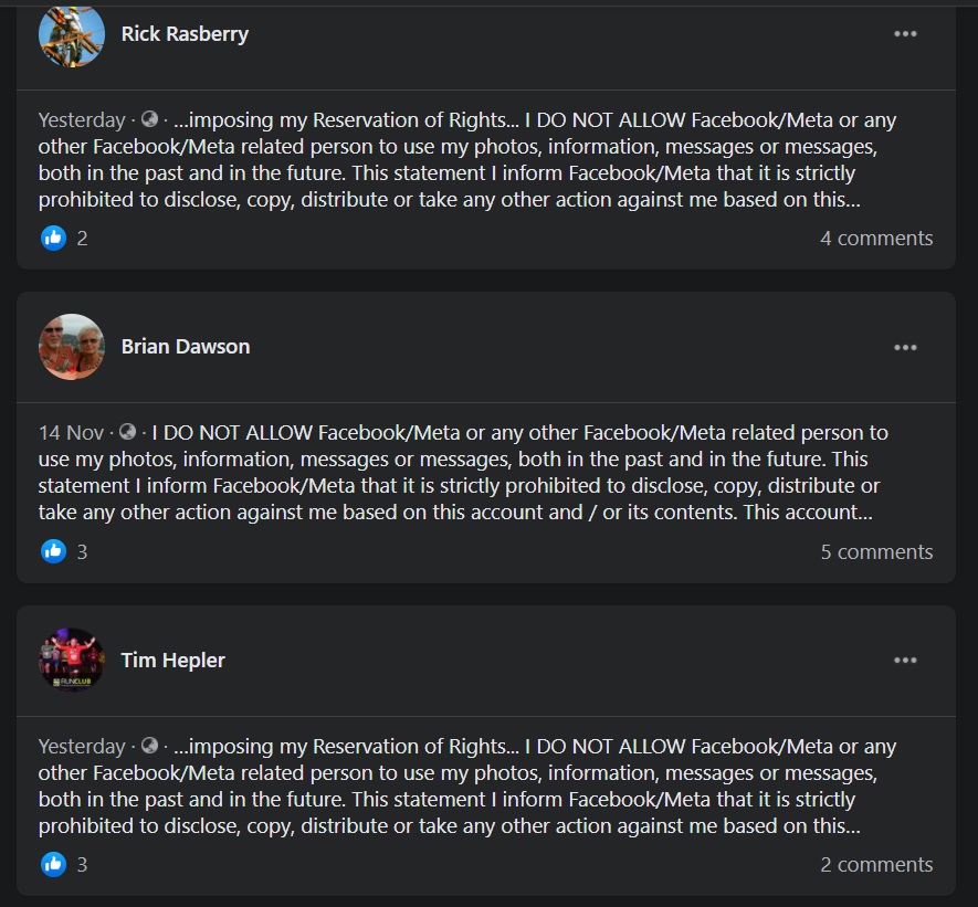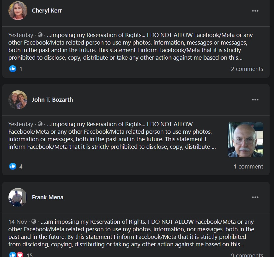या मेसेजमध्ये असे म्हटले आहे की,. “नवीन Facebook/Meta नियम उद्यापासून सुरू होईल जिथे ते तुमचे फोटो वापरू शकतात. आजची अंतिम मुदत आहे हे विसरू नका! हे तुमच्याविरुद्धच्या खटल्यांमध्ये वापरले जाऊ शकते. तुम्ही पोस्ट केलेले सर्व काही आज पोस्ट केले आहे – अगदी हटवलेले संदेश देखील. यास काहीही लागत नाही, फक्त कॉपी आणि पोस्ट करा, नंतर पश्चात्ताप करण्यापेक्षा चांगले.”