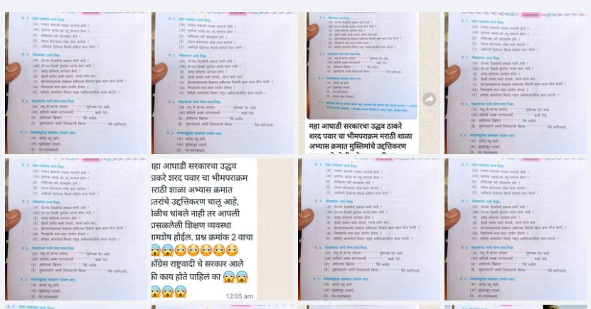 व्हायरल पोस्टमध्ये म्हटले आहे की, महा आघाडी सरकारचा उद्धव ठाकरे शरद पवारचा भीमपराक्रम…. मराठी शाळा अभ्यासक्रमात मुस्लिमांचे उद्दत्तिकरण चालू आहे, वेळीच ठेचला नाही तर आपली ढासळलेली शिक्षण व्यवस्था नामशेष होईल. प्रश्न क्रमांक 2 वाचा ~ ईद ची प्रार्थना कशी चालते याचे वर्णन करा. काँग्रेस राष्ट्रवादी चे सरकार आले की काय होते पाहिलं का?