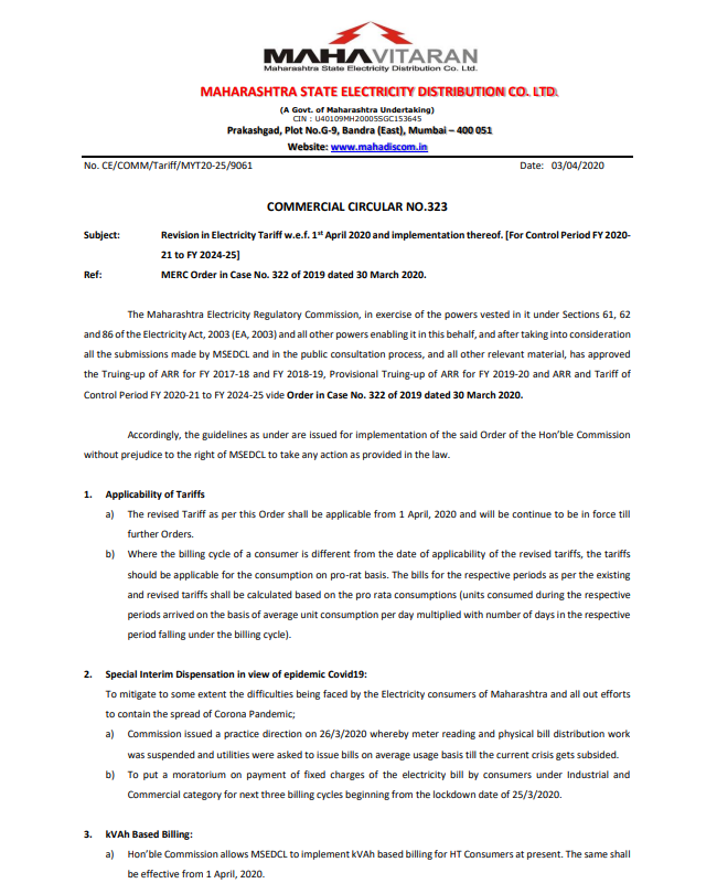 याचप्रमाणे प्रार्थनास्थळांना ज्याप्रमाणे वीजदर आकारला जातो त्याची अधिकृत माहिती देणारे या सर्क्युलर वरील पृष्ठ क्र. १५ वरील कोष्टक उपलब्ध झाले.