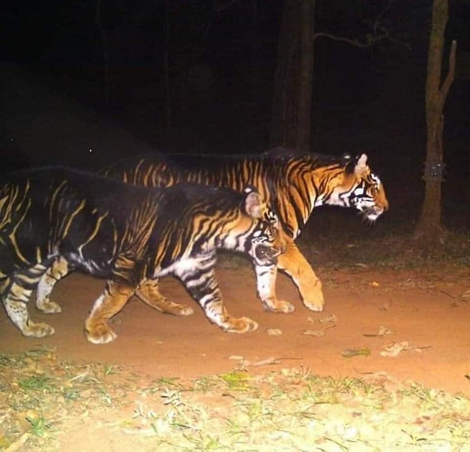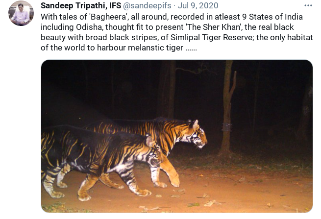 हा फोटो ओडिशामध्ये सध्या लागलेल्या आगीमुळे भाजलेल्या वाघांचा नाही. ओडिशामध्ये आढळणाऱ्या ‘ब्लॅक टायगर’ नावाने ओळखल्या जाणा-या वाघांचा आहे. माजी वनाधिकारी संदीप त्रिपाठी यांनी गेल्या वर्षी जुन 2020 मध्ये हो फोटो शेअर केला होता. या वाघांना मेलानिस्टिक टायगर्स असेही म्हणतात.