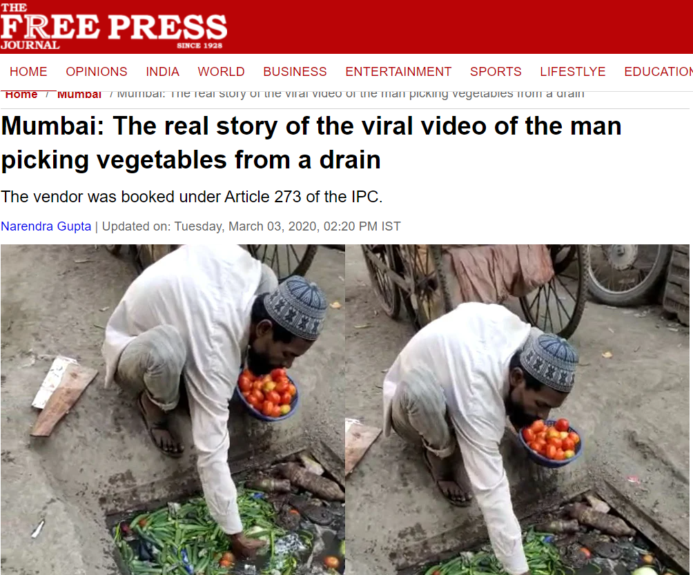 या दरम्यान एका मुस्लिम व्यक्तीला भिवंडीच्या पोलिसांनी गटारीच्या पाण्याने भाज्या धुताना पकडले होते. त्याच्यावर आयपीसीच्या २७३ अंतर्गत केस दाखल केली.