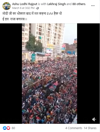 सोशल मीडियावर एक व्हिडिओ शेअर करत असा दावा करण्यात आला आहे की, हा पीएम मोदींनी वाराणसीमध्ये नुकत्याच केलेल्या रोड शोचा व्हिडिओ आहे. आता ईव्हीएमचा बहाणा चालणार नाही, असा टोलाही लोकांनी गर्दीच्या नावाखाली घेत लिहिले आहे.