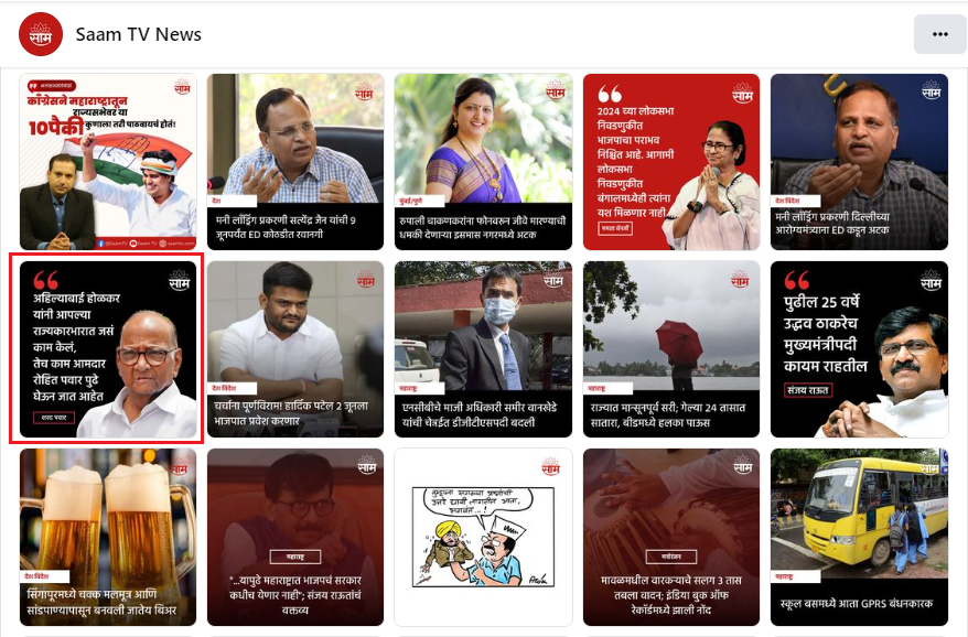 त्यानंतर आम्ही तो व्हायरल होणारा फोटो पुन्हा पाहिला. त्यावर साम टीव्हीचा लोगो होता. मग आम्ही साम टीव्हीच्या अधिकृत फेसबुक पानावर गेलो. तिथे आम्ही व्हायरल फोटो शोधण्याचा प्रयत्न केला. पण आम्हांला तो फोटो तिथे मिळाला नाही. पण आम्हांला त्याच्याशी अगदी मिळता-जुळता एक फोटो मिळाला.