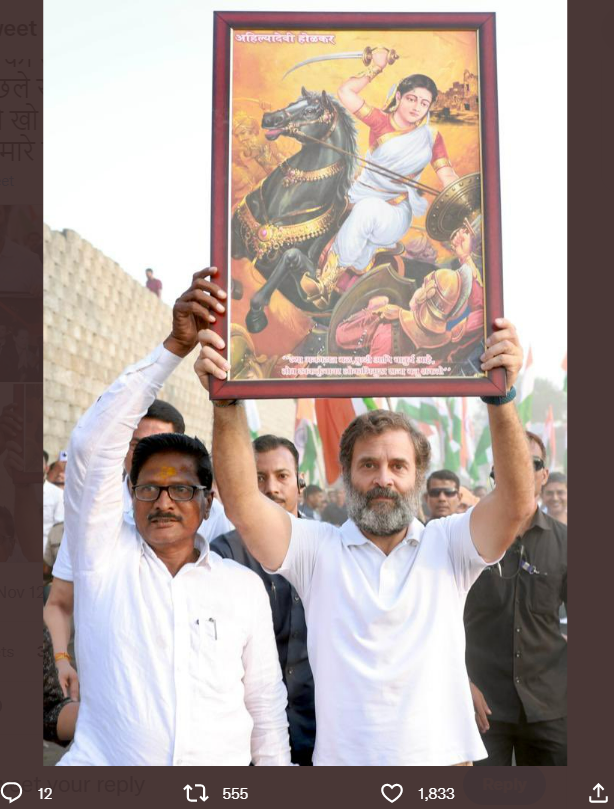 या मूळ फोटोत राहुल गांधी यांच्या फोटोत एक छायाचित्र आहे. ते कुणाचे आहे हे पाहण्याचा आम्ही प्रयत्न केला कारण राहुल गांधी यांच्या हाती गोपीनाथ मुंडे यांचा फोटो असे सांगून व्हायरल होत असलेल्या फोटोशी त्या मूळ फोटोचे साधर्म्य आम्हाला आढळून आले. मूळ फोटो बारकाईने पाहिला असता त्या फोटोत राहुल गांधी यांच्या हाती असलेले छायाचित्र हे अहिल्याबाई होळकर यांचे होते.