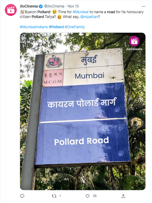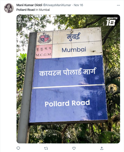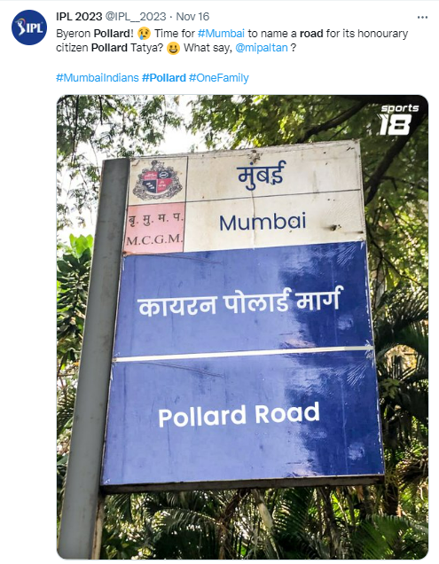 “आपल्या सन्माननीय सदस्याचे अर्थात पोलार्ड तात्यांचे नाव रस्त्याला देण्याची वेळ आली? काय सांगायचे…” असे पोस्ट करणाऱ्या Sports18 या ट्विटर वरील व्हेरीफाईड हॅन्डलने म्हटले आहे.