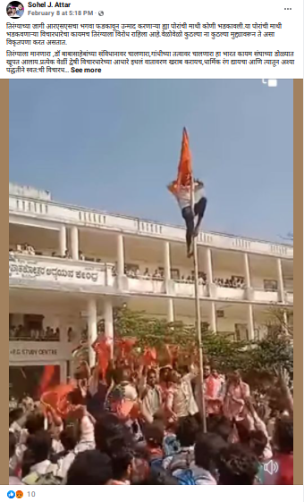 शिवमोग्गा येथील शासकीय प्रथम श्रेणी महाविद्यालयात तिरंगा काढून भगवा फडकवण्यात आला असल्याचा दावा दिशाभूल करणारा आहे. मुलाने भगवा ध्वज लावला होता तेव्हा ध्वजस्तंभ रिकामा होता.