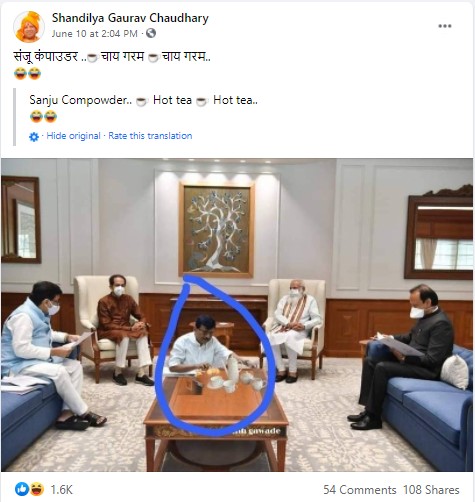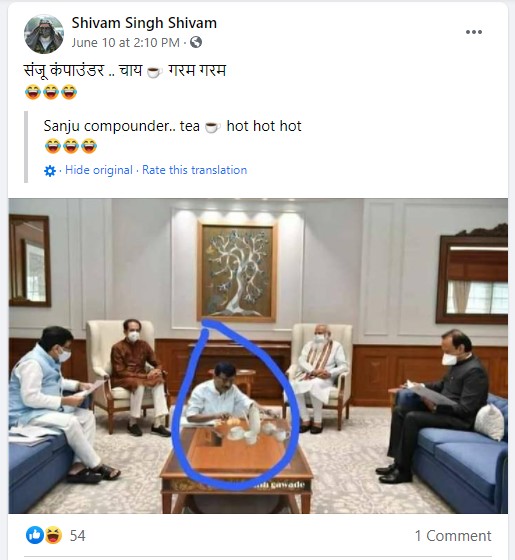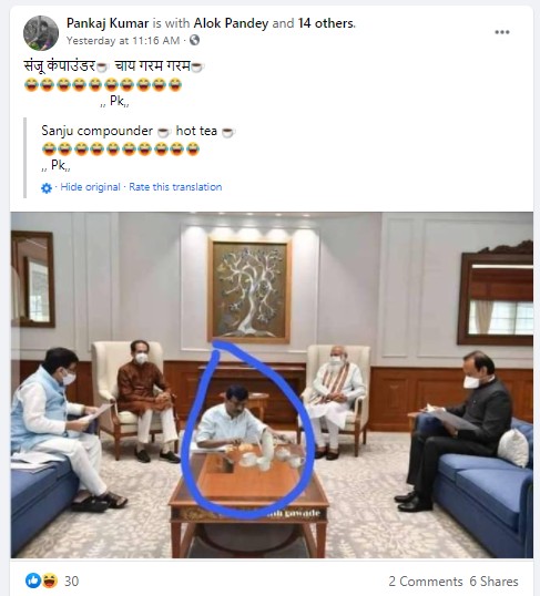 व्हायरल होत असलेल्या पोस्टमध्ये देखील संजू कंपाउडर… चाय गरम… चाय गरम असे लिहिले आहे. आम्हाला संजय राऊत यांचा पंतप्रधान आणि मुख्यमंत्र्यांच्या बैठकीत चहा बनवितानाचा फोटो असलेल्या अनेक पोस्ट फेसबुकवर आढळून आल्या.