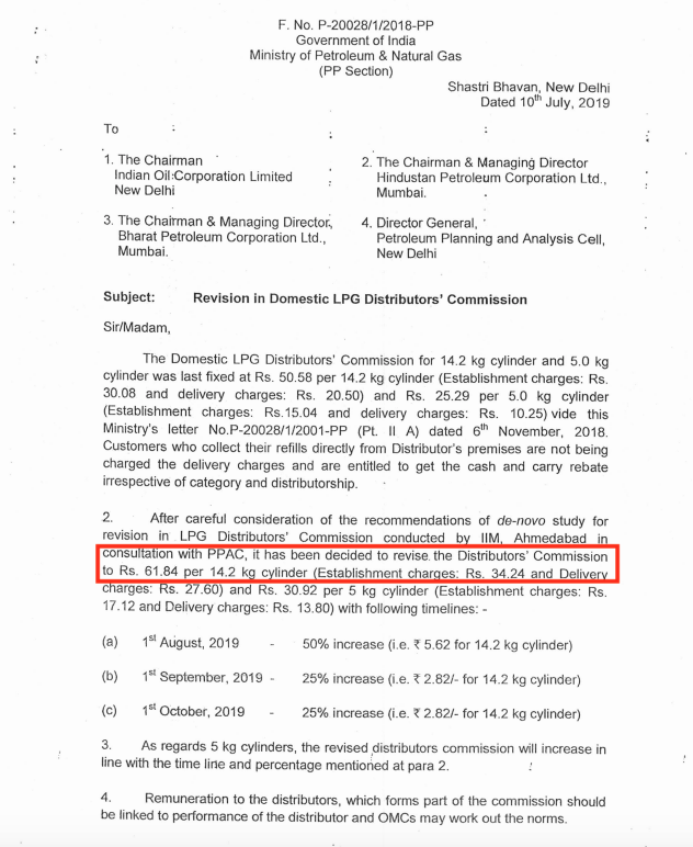 Government of India order: http://petroleum.nic.in/sites/default/files/LPGDC.pdf