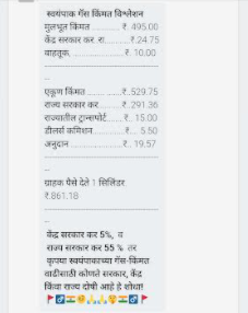 व्हायरल मेसेजमध्ये मूलभूत किंमत, डीलर कमिशन, ट्रांसपोर्ट, केंद्र सरकारचा कर, राज्य सरकार कर इत्यादी माहिती देण्यात आली आहे. मेसेजच्या शेवटी असे लिहिले आहे की, केंद्र सरकार 5 टक्के, राज्य सरकार कर 55 टक्के कर आकारत आहे म्हणून कृपया स्वयंपाक गॅसच्या दरवाढीसाठी कोणते सरकार दोषी आहे ते शोधा.