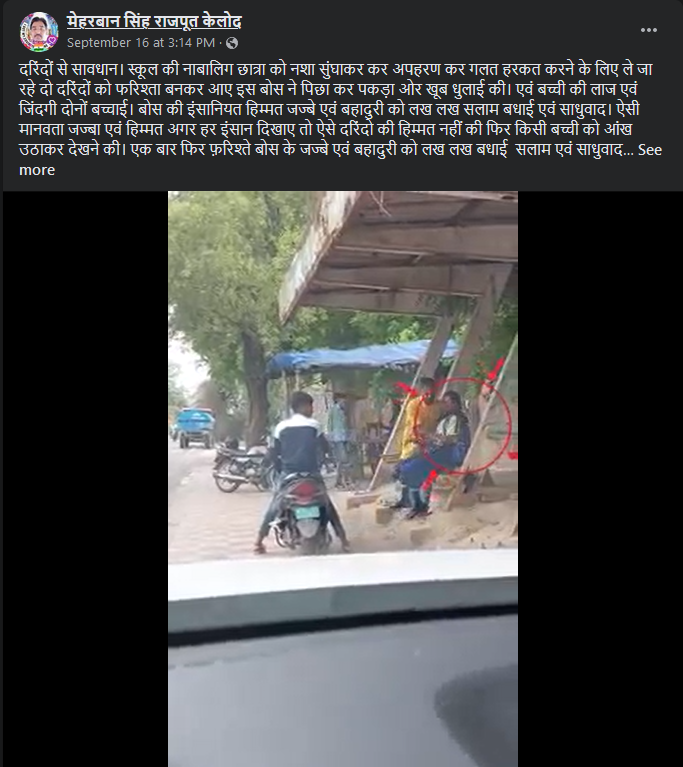 व्हायरल व्हिडीओमध्ये दिसत आहे की, दोन तरुण त्या मुलीला बस स्टँडमध्ये शाळेच्या ड्रेस मध्ये उभी असताना आपल्या बाईकवर बसवून पुढे निघून जातात. पाठीमागच्या गाडीत बसलेला त्यांचा व्हिडिओ बनवणारा तरुण त्यांचा पाठलाग करतो आणि थोडं पुढे जाऊन त्यांना थांबवतो. सुरुवातीला ही मुलगी आपल्या घरची असल्याचा दावा दोन्ही बाइकस्वार करतात, मात्र गाडीतील तरुणाने त्यांना मारहाण केली असता, दोघेही मुलीला पळवून नेत असल्याची कबुली देतात.