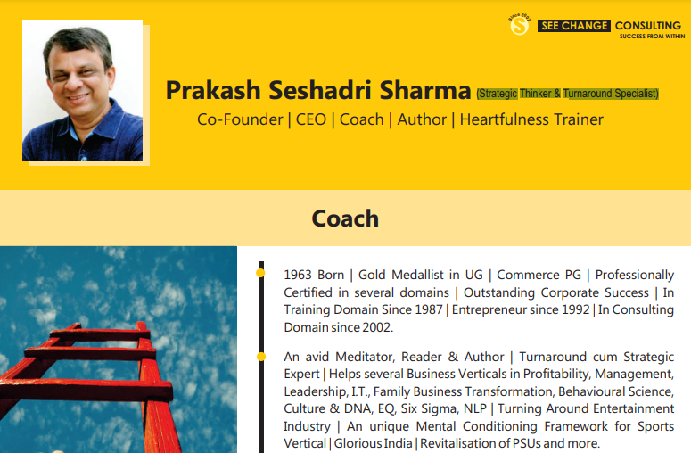 आम्ही YouTube व्हिडिओचे काळजीपूर्वक विश्लेषण केले, व्यायाम दाखवणारी व्यक्ती डॉक्टर असल्याचा उल्लेख आढळला नाही. Google वर ‘sechangeprakash’ साठी कीवर्ड शोध घेतल्यानंतर, आम्हाला seechangeworld.in या व्यवस्थापन सल्लागार वेबसाइटवर नेण्यात आले.
