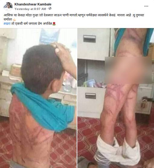 उत्तरप्रदेशातील गाझियाबाद मध्ये एका मुलगा पाणी पिण्यासाठी मंदिरात आला होता तेथे उभ्या असलेल्या युवकाने त्याला नावा विचारले तसेच आपल्या साथीदाराला व्हिडिओ बनविण्यास सांगितले त्या मुलाने आपले नाव आसिफ सांगताच त्याने मंदिरात तुझे काय काम आहे असा प्रश्न विचारताच त्याला मारहाण केली. याचा व्हिडिओ देखील इंस्टाग्रामवर अपलोड केला. मात्र काही सेकंदाचा हा व्हिडिओ व्हायरल झाल्यानंतर पोलिसांनी आरोपीला अटक केली. मात्र यानंतरही सोशल मीडियात या मुलाला मारहाण झाल्याच्या दाव्याने काही फोटो शेअर होत आहेत. व्हायरल पोस्टमध्ये म्हटले आहे की, “आसिफ चा केवढा मोठा गुन्हा ! तो देवळात जाऊन पाणी मागतो.म्हणून धर्मवेड्या व्यवस्थेने केवढं मारला आहे .थू तुमच्या धर्मावर. #खरा तो एकची धर्म जगाला प्रेम अर्पावे”