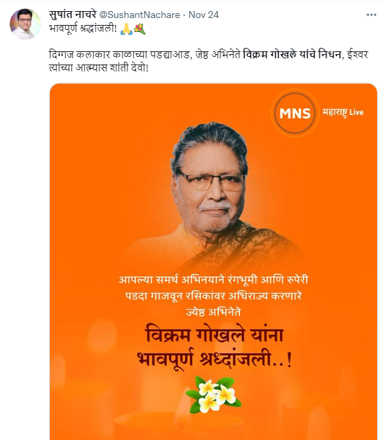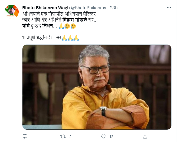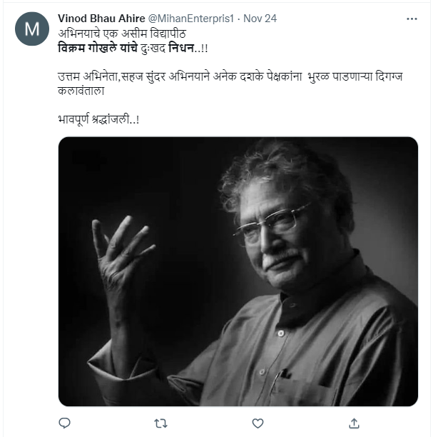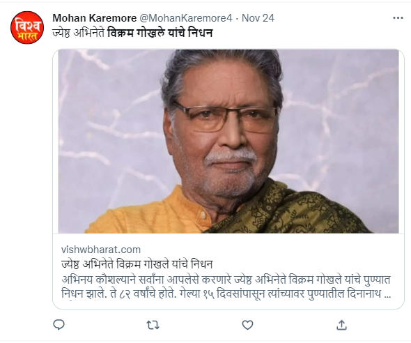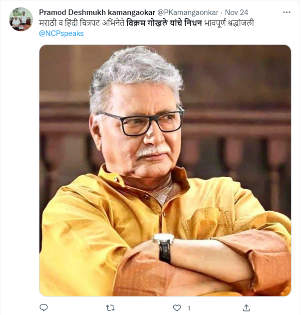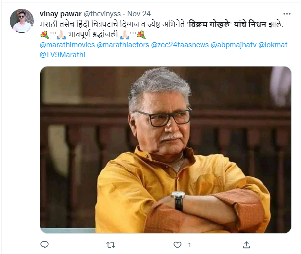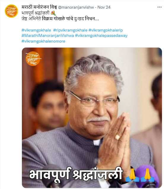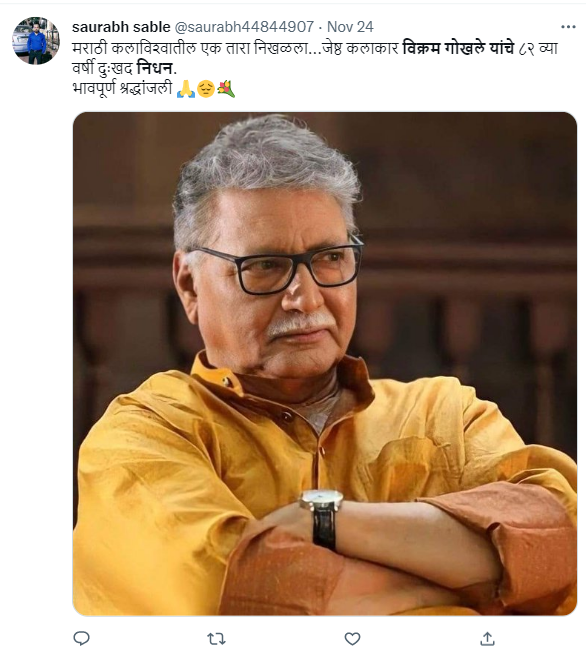 निधनाच्या पोस्ट झळकल्या आणि अनेक माध्यमांनी त्याची बातमीही केली. विक्रम गोखले यांच्या चाहत्यांनी त्यांना भावपूर्ण श्रद्धांजली अर्पण करण्यास सुरुवात केली होती.