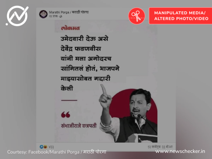 संभाजीराजे छत्रपती यांच्या नावाने व्हायरल झालेला लोकमतचा फोटो खरा आहे? याचे सत्य जाणून घ्या