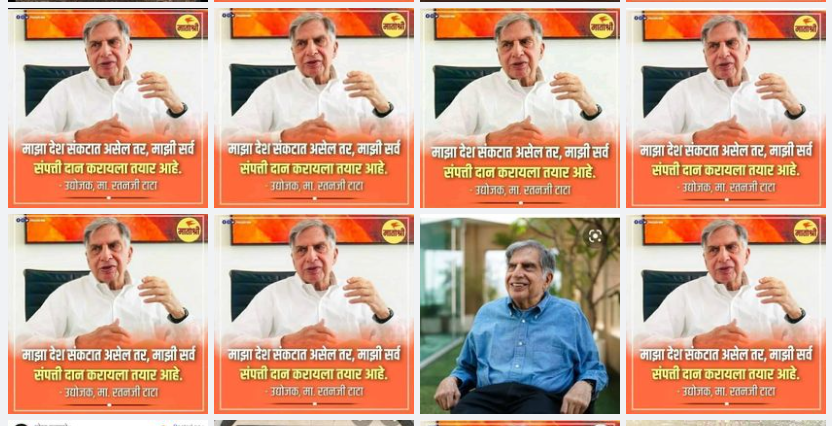 | Claim Review: रतन टाटांनी देशाला कोरोनामुक्त करण्यासाठी सगळी संपत्ती दान करण्यास तयार असल्याचे म्हटले Claimed By: Social Media post Fact Check: Misleading |