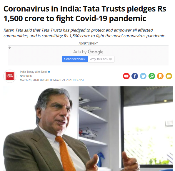 टाईम्स आॅफ इंडिया https://www.indiatoday.in/india/story/coronavirus-india-tata-trusts-five-hundred-crore-covid19-pandemic-1660732-2020-03-28