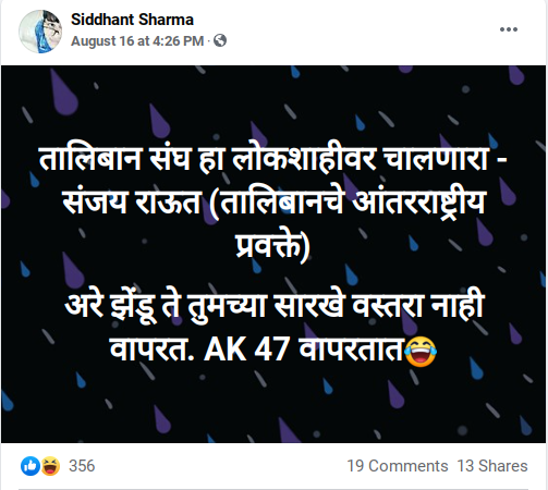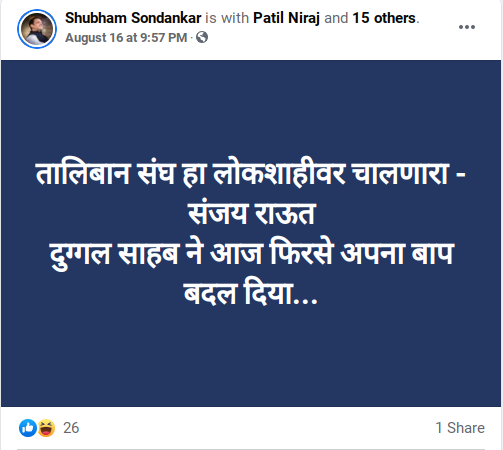 आमच्या पडताळणीत स्पष्ट झाले की संजय राऊत यांच्या तालिबान संदर्भातील वक्तव्याचा विपर्यास करण्यात आला व चुकीचा दावा सोशल मीडियात व्हायरल झाला.