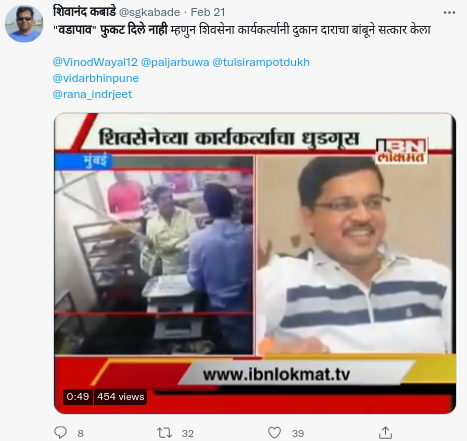 आता शिवसेना नेत्याने फुकट वडापावसाठी दुकानदाराला मारहाण केल्याचा व्हिडिओ व्हायरल होत आहे.