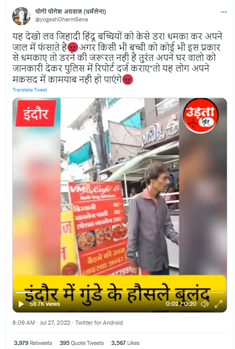 काही ट्विटर युजर हा व्हिडिओ शेअर करत ही घटना ‘लव्ह जिहाद’चा असल्याचा दावा करत आहे.