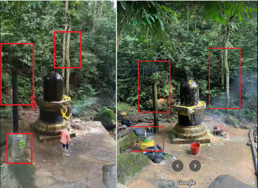 या व्यतिरिक्त आम्हाला गुगल मॅप्सवर त्या ठिकाणावरील काही फोटो मिळाले. तो मिळालेला फोटो आणि व्हायरल झालेल्या व्हिडिओतील एका फोटोची तुलना केली. व्हायरल व्हिडिओ लॉर्ड शिवा मेडिटेशन संच्युरी, बेंटोंग कराक रोड सेलानगोर मलेशिया येथील आहे.