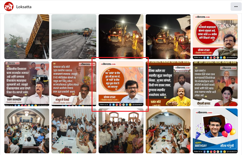 शिवसेनेचे खासदार व प्रवक्ते संजय राऊत यांनी हे विधान खरंच केलंय की नाही, याची पडताळणी करण्यासाठी आम्ही लोकसत्ताचे अधिकृत फेसबुक पान तपासले. तेव्हा आम्हांला व्हायरल फोटोशी मिळता-जुळता एक फोटो मिळाला.