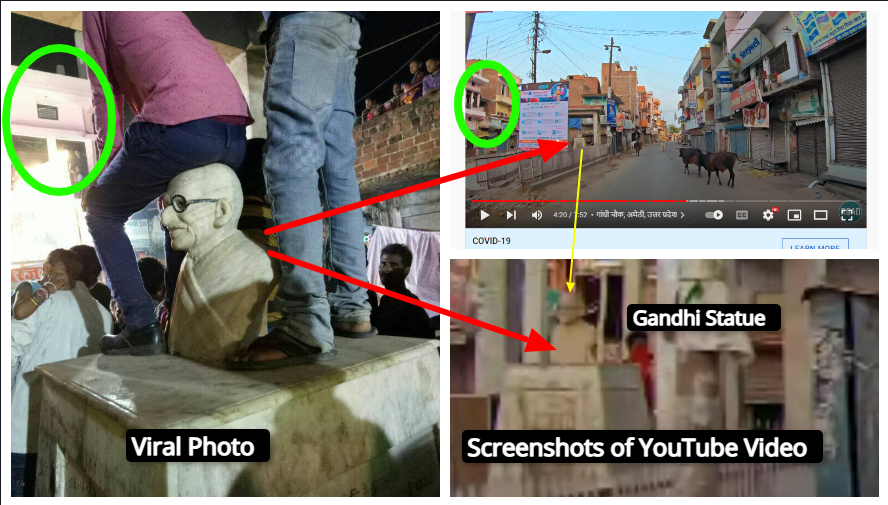 या व्यतिरिक्त अमेठीमधील गांधीजी यांच्या काही मूर्तींचे फोटो आणि व्हिडिओ आम्हांला मिळाले. त्यावरून हे स्पष्ट होते की, हा फोटो अमेठीमधलाच आहे.