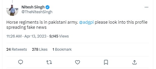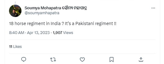 We skimmed through multiple publicly available lists of Indian Army regiments, but did not find any mention of 18 Horse Regiment. Additionally, we noticed that several social media users, including Journalist Shiv Aroor, pointed out that there is no 18 Horse Regiment in the Indian Army.