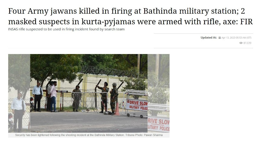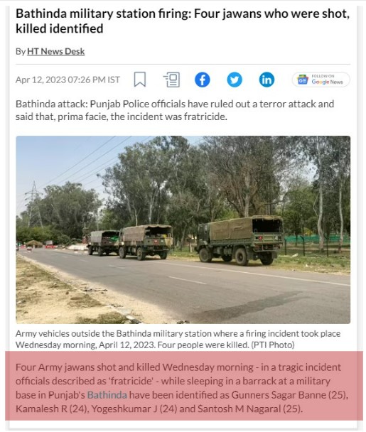 Further, multiple reports over the past 24 hours have confirmed that there were four casualties in the Bathinda military station firing on April 12, 2023. Such reports can be seen here, here and here.