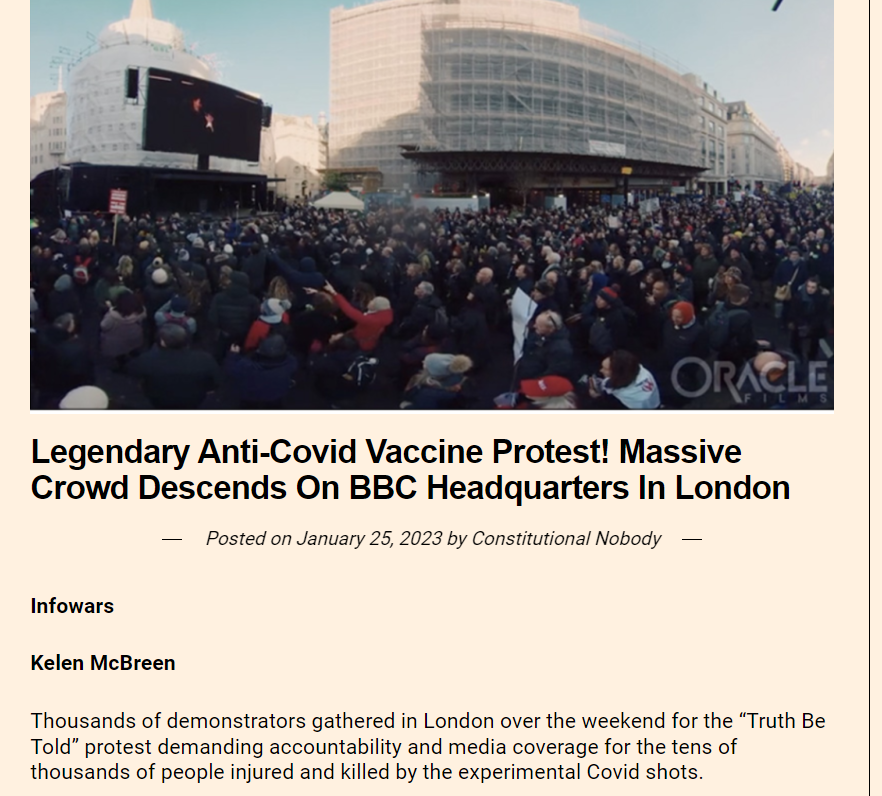 We also found the same video on USSA News website which also clarified that the protests were held against the BBC for not providing media coverage on the deaths and injuries due to the experimental Covid shots.