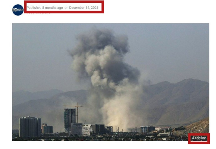 Newschecker ran a Yandex reverse image search on the viral picture that is being shared to show the recent blast in Kabul, which led us to a report by Afghanistan-based Ariana News, dated December 14, 2021. Displaying the viral image, the report elaborated on an explosion in the Tank-e-Logar area of Kabul’s PD8 in December last year. Notably, the featured image carried a watermark saying “Archive” on the bottom right corner, indicating that it was not recently clicked.