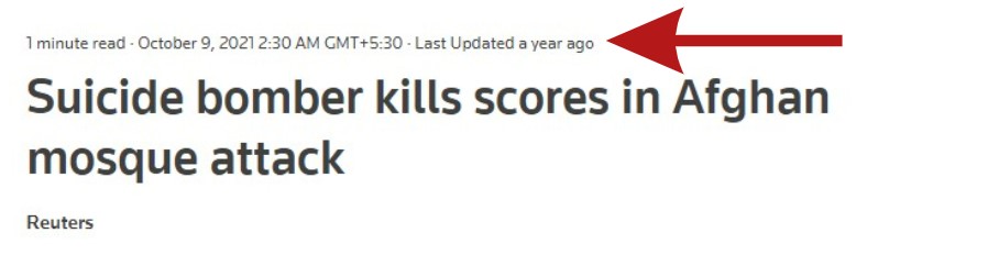 A TinEye search on the viral photograph yielded a report by Reuters, dated October 9, 2021, titled ‘Suicide bomber kills scores in the Afghan mosque attack.’ Displaying the viral image, the report stated, “A suicide bomber attacked a mosque in Afghanistan’s northeastern Kunduz province on Friday, killing scores of worshippers in the country’s third attack this week on a religious institution. Islamic State claimed responsibility for an attack that state-run Bakhtar news agency said had killed 46 people and wounded 143.”