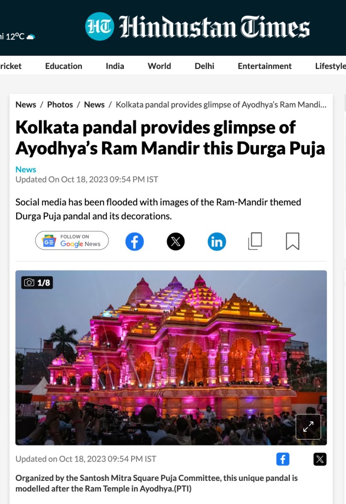 Our research revealed that last year, the Santosh Mitra Square Durga Puja Committee built a Puja pavilion modeled on the Ram Temple in Ayodhya. The inauguration of the pavilion was attended by Union Home Minister Amit Shah.