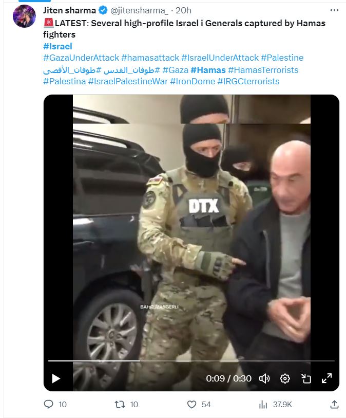 A viral video shows handcuffed individuals being forcibly removed from a vehicle by men in military attire. Along with this video, it has been claimed that several high-profile Israeli Generals are apprehended by Hamas fighters amid the ongoing Israel-Palestine conflict. But, in reality, the viral video shows arrests of Karabakh separatists leaders in Azerbaijan. This viral post can be viewed by clicking here.
