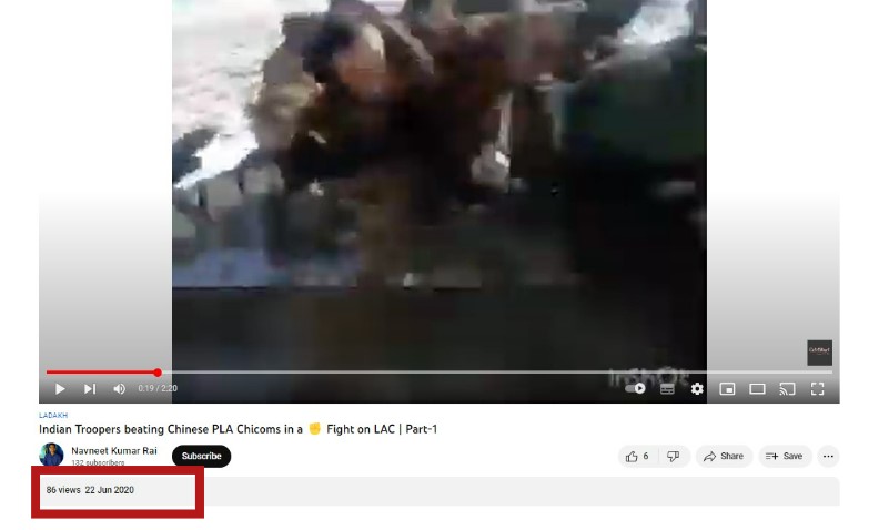 A Google reverse image search on the keyframes of the viral clip led us to a YouTube video by Navneet Kumar Rai, dated June 20, 2020, titled ‘Indian Troopers beating Chinese PLA Chicoms in a ✊ Fight on LAC | Part-1.’ It showcased a 2:20-minute-long video of what appears to be a skirmish between the Indian and the Chinese soldiers.