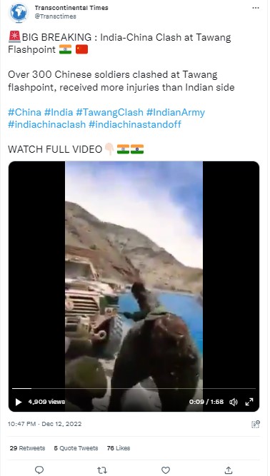 Thus, media reports indicate that the viral video that is being shared as clashes between the Indian army and the PLA in Tawang, is at least over 2 years old.