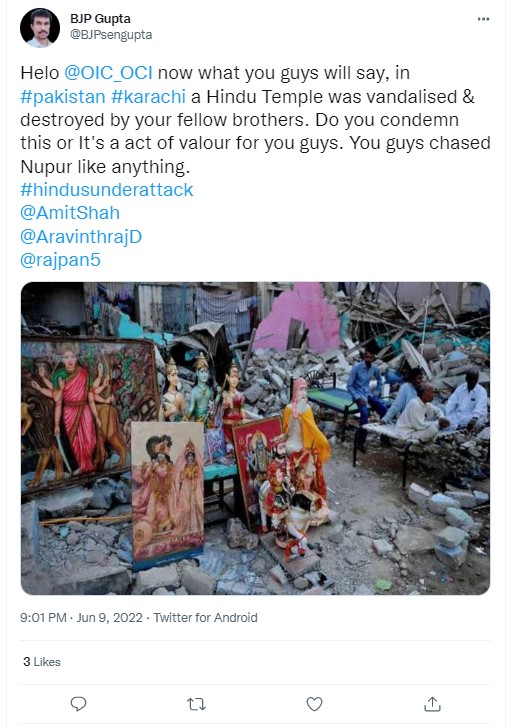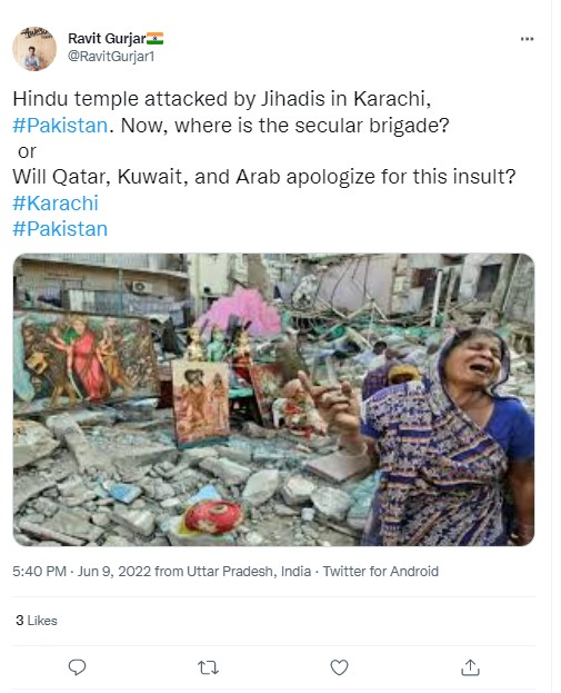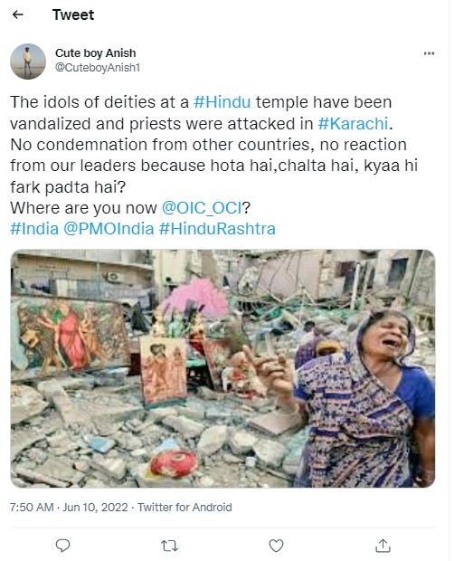 The remaining images could also be traced back to the 2012 incident of demolition of Shri Rama Pir Temple in Karachi.
