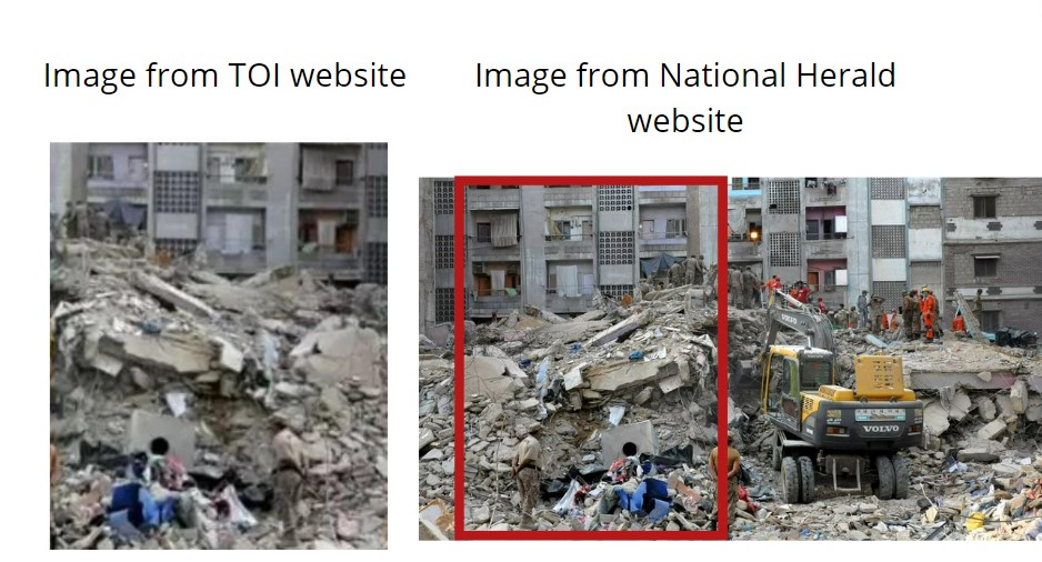 On comparing the image featured in National Herald with the second image in TOI report, we could conclude that they are related to the same incident.