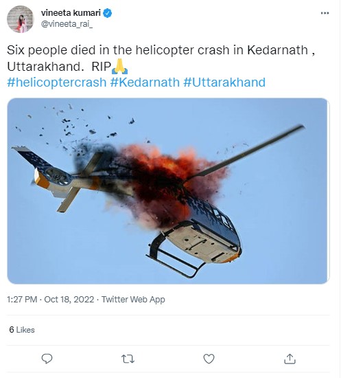 We found several other news outlets have used the viral photo as a ‘representative image’ while reporting on different chopper crashes time and again.The same can be seen here, here and here.
