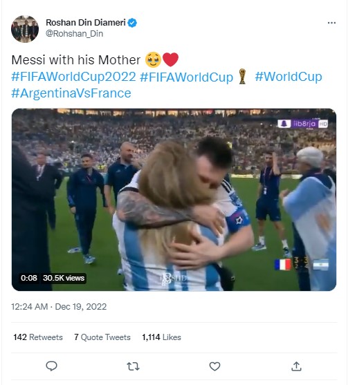 Several Twitter users shared the video claiming to show an emotional moment between Messi and his mother after the World Cup win.