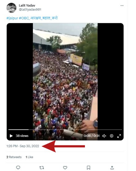 On September 30, 2022, multiple Twitter users had shared a longer version of the viral clip linking it to an OBC rally in Jaipur. Such posts can be seen here, here and here.