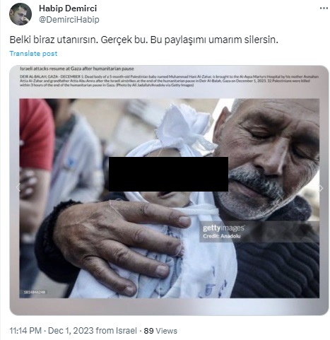 Tweet by @DemirciHabip, dated December 1, 2023