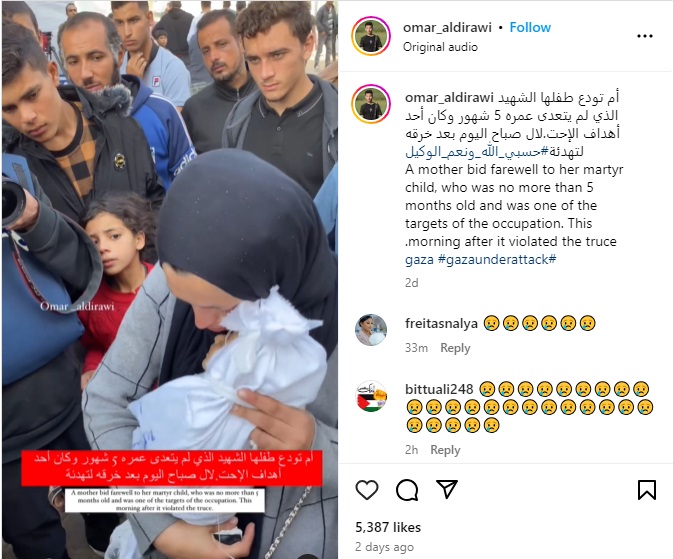 The Instagram page had two other videos showing relatives mourning the same infant. You can see them here, and here.
