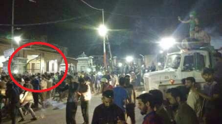 The video tweeted by @Sassy_Hindu pans to show the larger crowd. On closer observation, one can see a white and green banner. On comparing it with another video tweeted by @AbubakarTweets in 2017, one can see the same white and green banner in the background. One can also see the white truck pull up into what appears to be a roundabout.