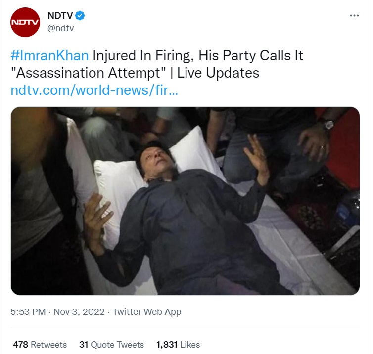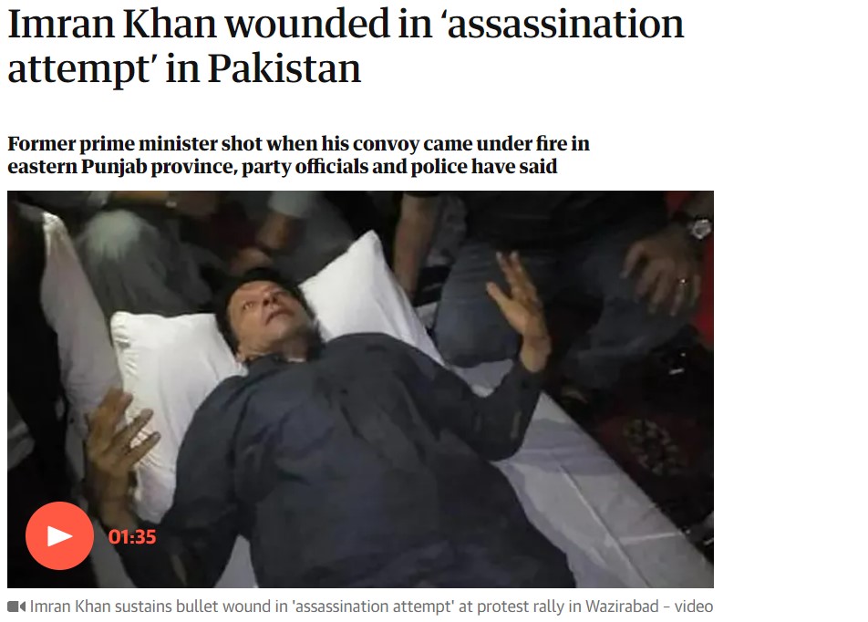 The Guardian also used the same image of Khan in a report on the alleged assassination attempt on the Pakistan leader. It’s archived version can be seen here.