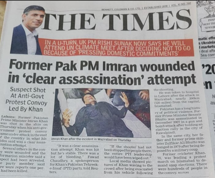 Indian news major Times of India featured the viral image of Imran Khan in it’s print edition dated November 4, 2022. The same can be seen below.