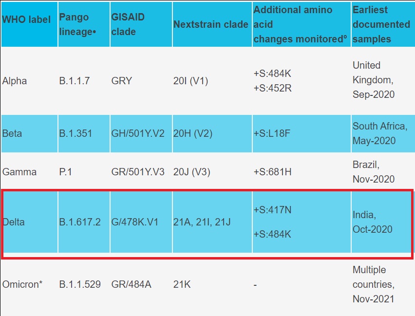 On further observation, Newschecker also found factual inaccuracies with the dates mentioned in the viral image. For instance, the table mentions June 2021 as the ‘date of release’ for the Delta variant. But according to WHO the variant was detected as early as October 2020 in India.