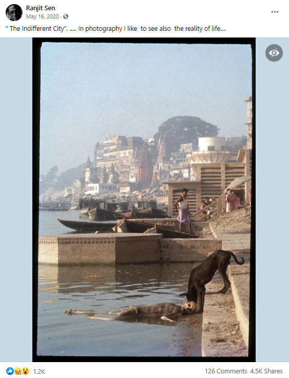 ਵੈੱਬਸਾਈਟ ਦੇ ਮੁਤਾਬਕ ਤਸਵੀਰ ਨੂੰ Dinodia Photo ਦੇ ਫੋਟੋਗ੍ਰਾਫਰ ਰਣਜੀਤ ਸੇਨ ਨੇ ਖਿੱਚਿਆ ਸੀ। ਅਸੀਂ ਸੋਸ਼ਲ ਮੀਡੀਆ ਤੇ ਵਾਇਰਲ ਹੋ ਰਹੀ ਤਸਵੀਰ ਨੂੰ ਲੈ ਕੇ ਰਣਜੀਤ ਸੇਨ ਦੇ ਫੇਸਬੁੱਕ ਅਕਾਊਂਟ ਨੂੰ ਖੰਗਾਲਿਆ। ਸਰਚ ਦੇ ਦੌਰਾਨ ਸਾਨੂੰ ਵਾਇਰਲ ਹੋ ਰਹੀ ਤਸਵੀਰ ਰਣਜੀਤ ਸੇਨ ਦੁਆਰਾ 16 ਮਈ 2020 ਨੂੰ ਅਪਲੋਡ ਮਿਲੀ। ਕੁਮੈਂਟ ਸੈਕਸ਼ਨ ਵਿਚ ਕਈ ਲੋਕ ਇਸ ਤਸਵੀਰ ਨੂੰ ਪੁਰਾਣਾ ਦੱਸ ਰਹੇ ਹਨ।